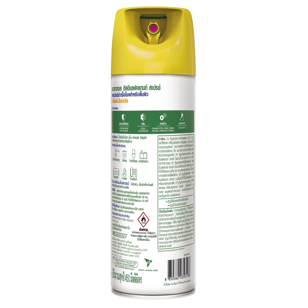 เดทตอล ดิสอินเฟคแทนท์ สเปรย์ ซันไชน์บรีซ 450มล. x2