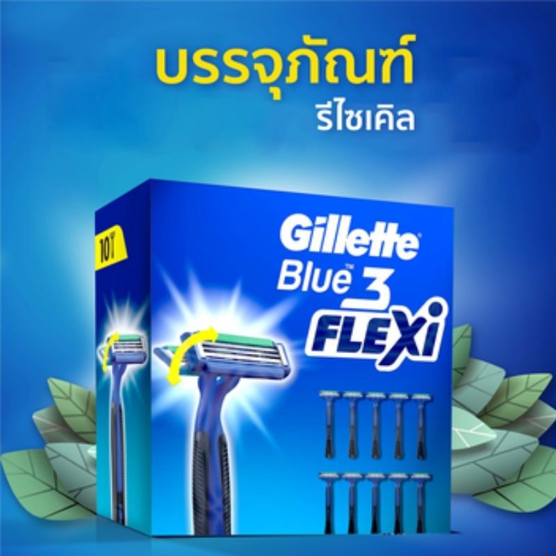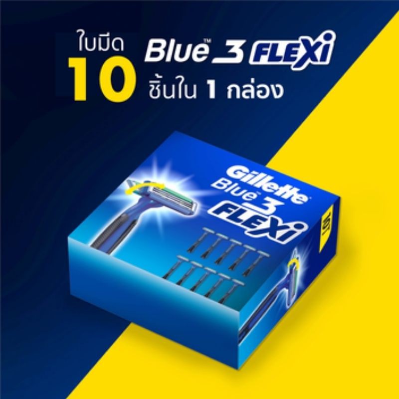 Gillette Blue 3 Flexi Disposable Razors 10pcs ยิลเลตต์ ด้ามน้ำเงิน บลู3 เฟล็กซ์ซี่ แพ็ค 10 ด้าม