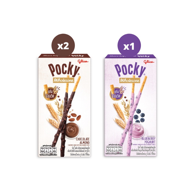 (แพค x 3) Pocky กูลิโกะ ป๊อกกี้ โฮลซัม รสช็อคโกแลต x 2 + รสบลูเบอร์รี x 1