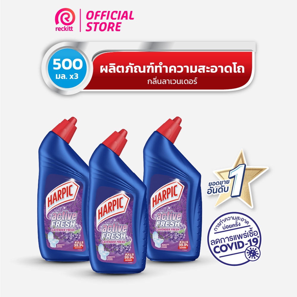Harpic ฮาร์ปิค ผลิตภัณฑ์ทําความสะอาดห้องน้ำ กลิ่นลาเวนเดอร์ 500 มล. x3 แพ็ค