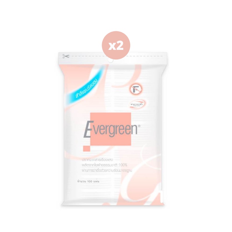 Evergreen เอเวอร์กรีน สำลีแผ่นรีดขอบ 100 แผ่น x2