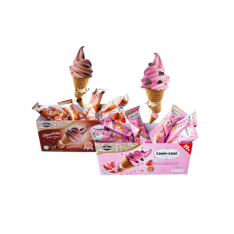 Nezline Coney Cone โคนี่โคน ขนมเวเฟอร์โคนวนิลาสอดไส้ ขนาด 13 กรัม x 20 ซอง (เลือกรสได้)