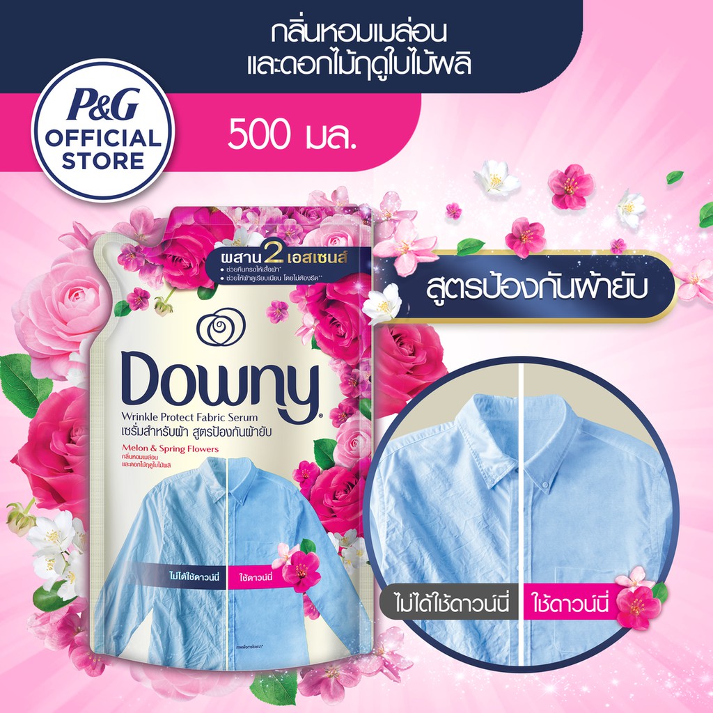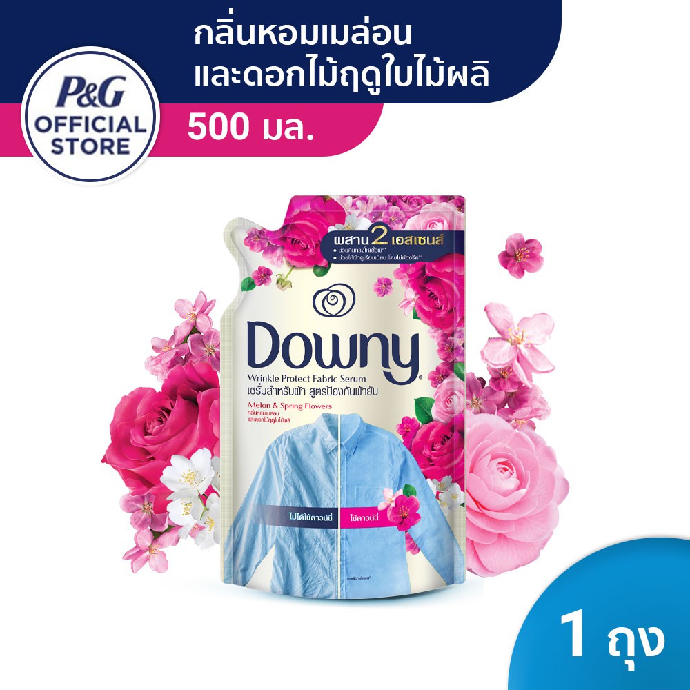 [ใหม่]Downy Fabric Serum ดาวน์นี่ น้ำยาปรับผ้านุ่ม สูตรป้องกันผ้ายับ กลิ่นหอมเมล่อนและดอกไม้ฤดูใบไม้ผลิ ถุงเติม 500มล.
