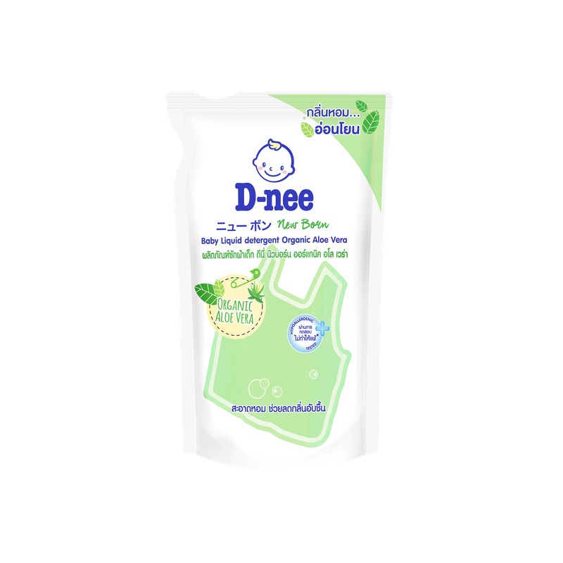 [3ชิ้น]D-Nee ดีนี่ ผลิตภัณฑ์ซักผ้าเด็ก ออร์แกนิค อโลเวร่า กลิ่น Organic Aloe Vera ถุงเติม 550 มล.