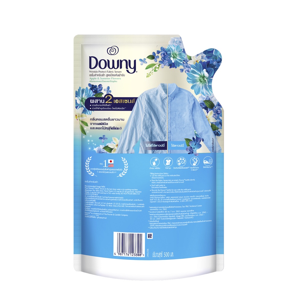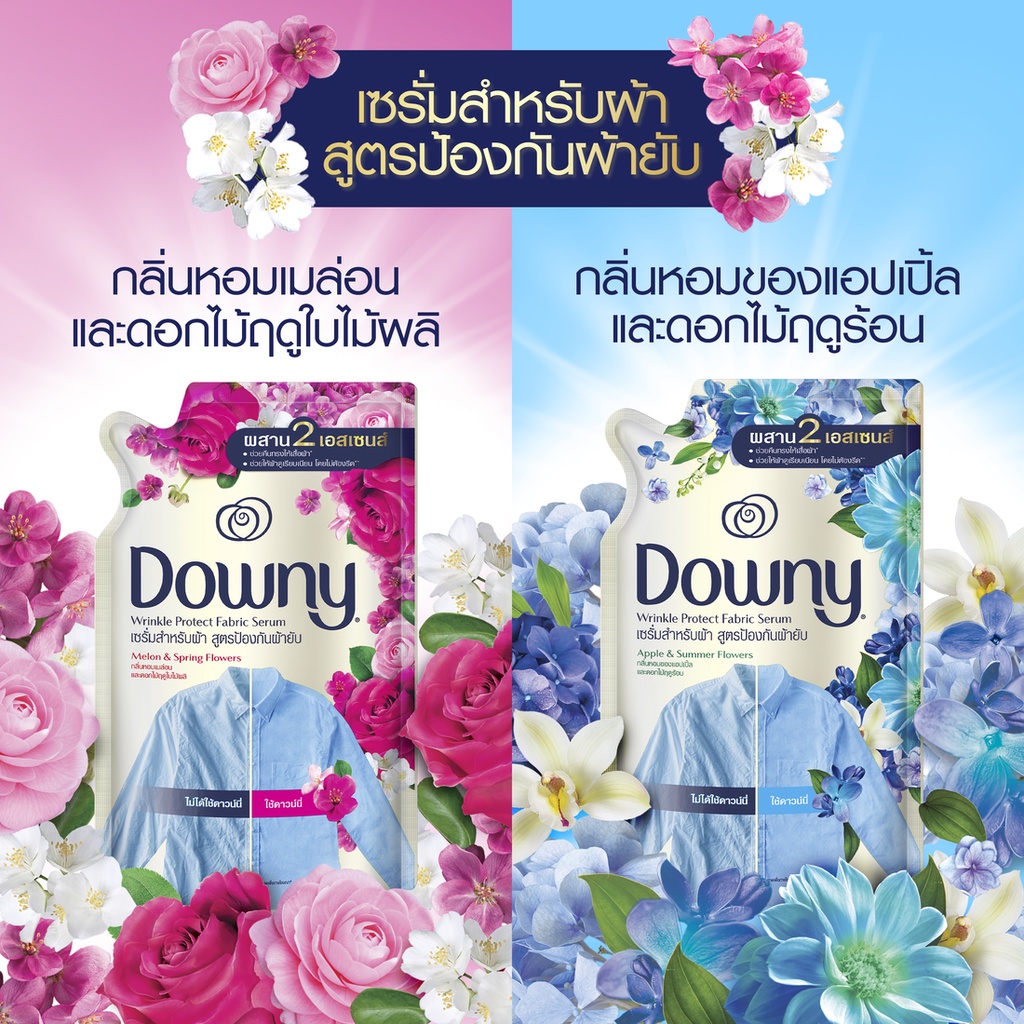 [ใหม่!]Downy Fabric Serum ดาวน์นี่ น้ำยาปรับผ้านุ่ม สูตรป้องกันผ้ายับ กลิ่นหอมแอปเปิ ้ลและดอกไม้ฤดูร้อน ถุงเติม 500มลx2
