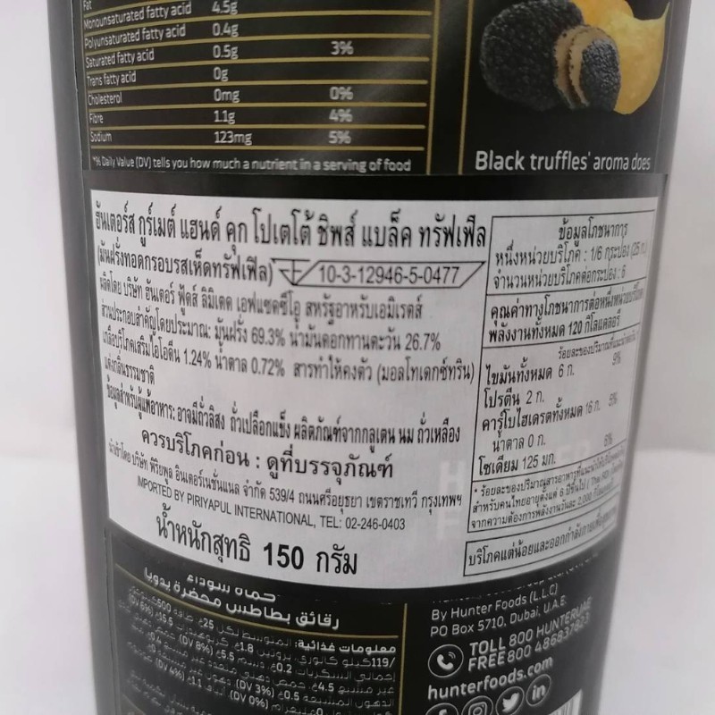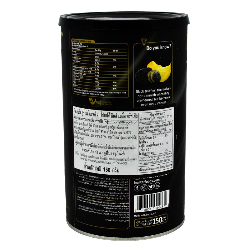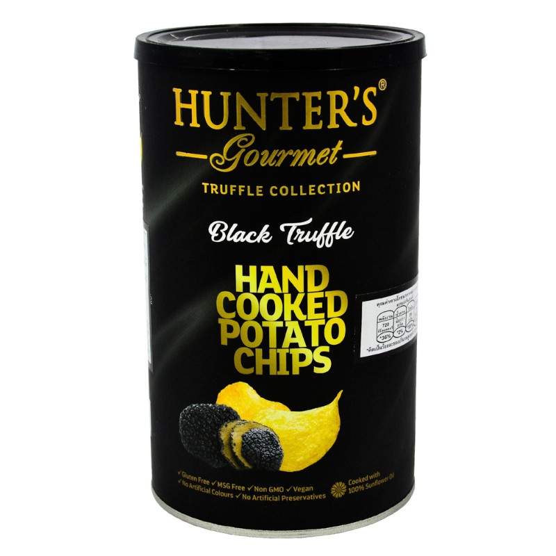 Hunter's ฮันเตอร์ส กูร์เมต์ แฮนด์ คุก โปเตโต้ ชิพส์ แบล็ค ทรัฟเฟิล 150 กรัม (มันฝ รั่งทอดกรอบรสเห็ดทรัฟเฟิล)