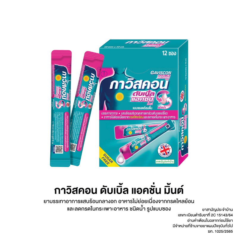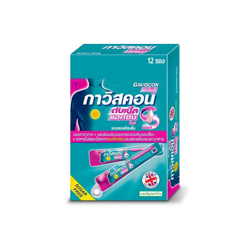 Gaviscon กาวิสคอน ดับเบิ้ล แอคชั่น รสมิ้นต์ ชนิดซอง 10 มล. 12 ซอง จำนวน 1 กล่อง