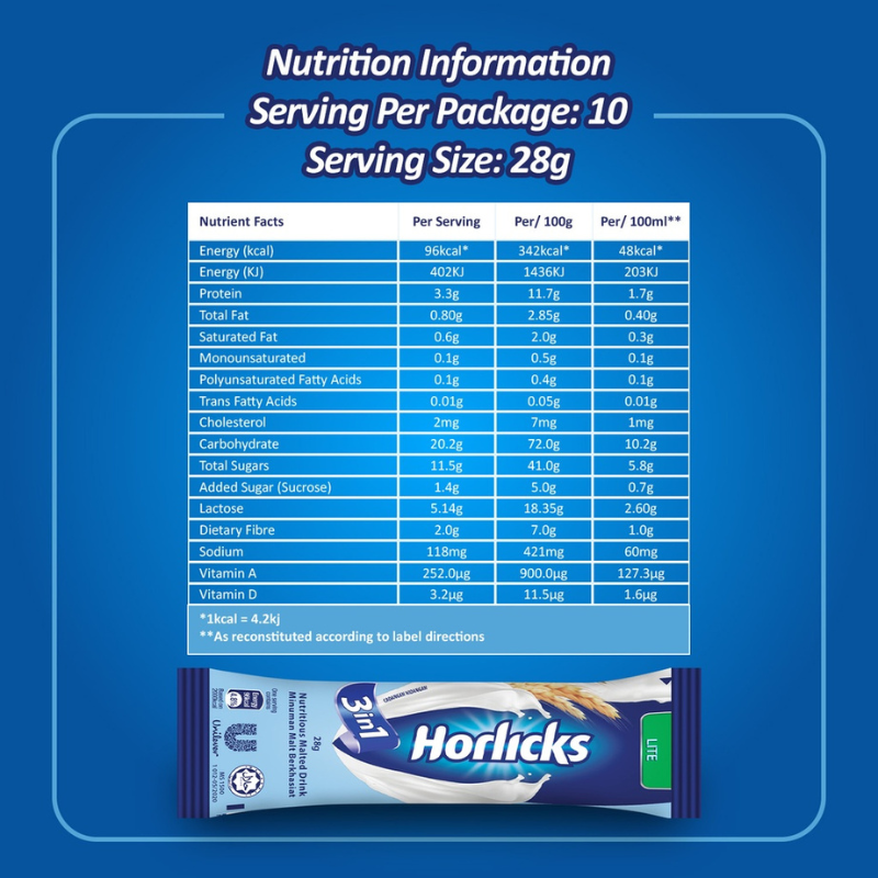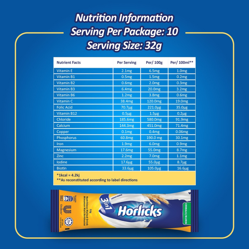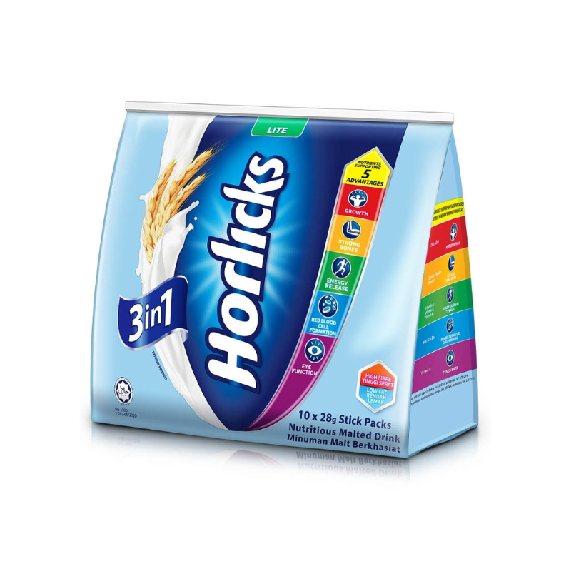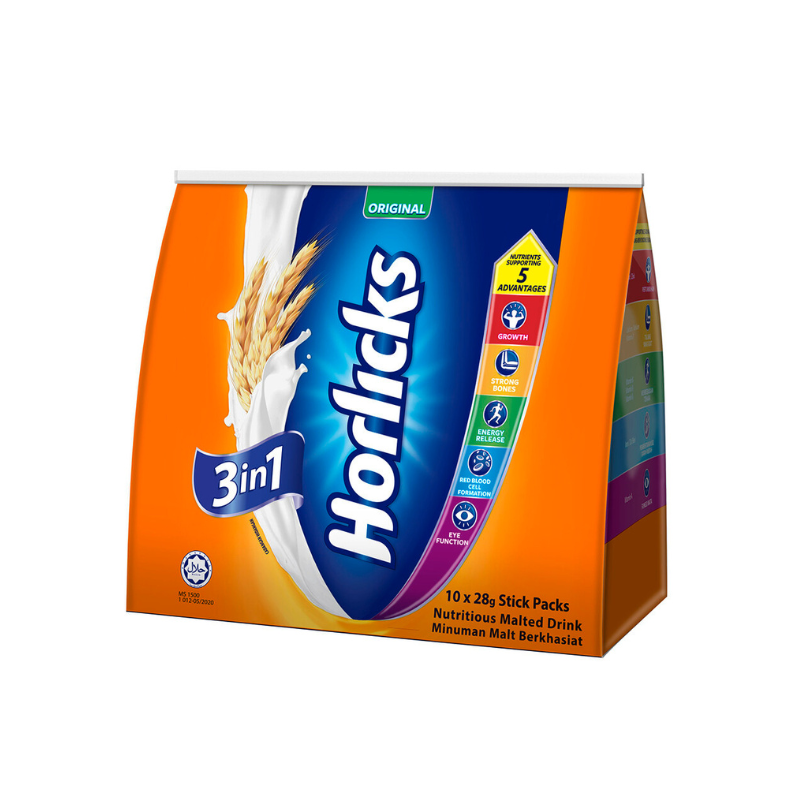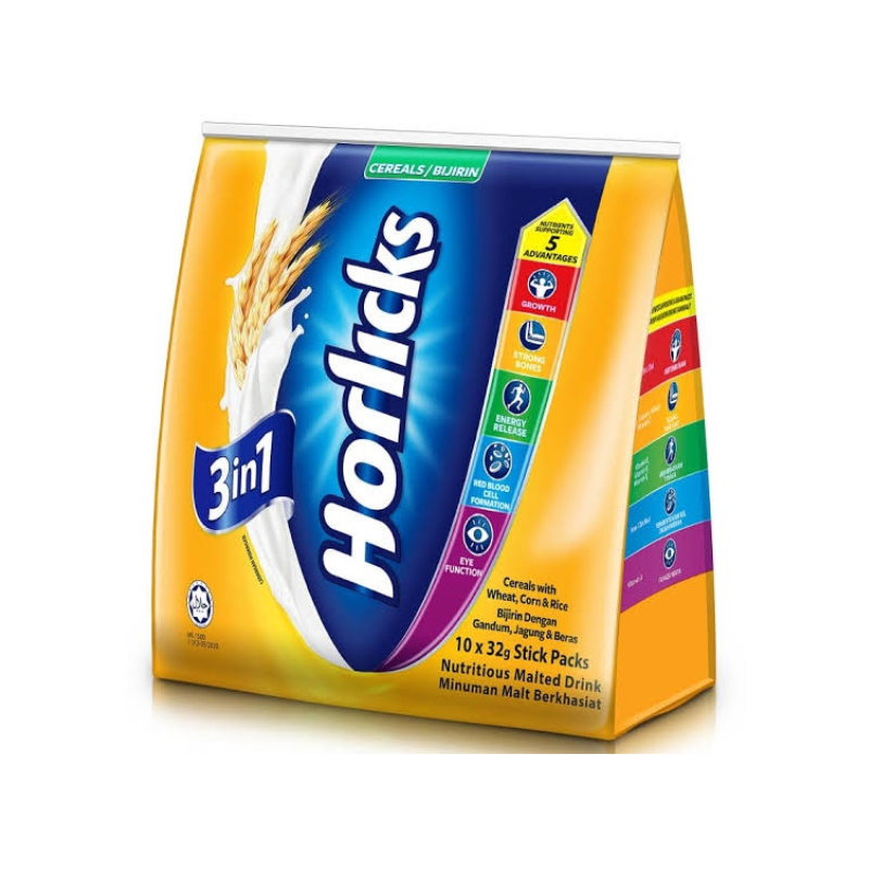 Horlicks 3-in-1 Nutritious Malted Drink Original ฮอร์ลิคส์ 3 อิน 1 ขนาด 280-320 กรัม (เลือกรสได้)