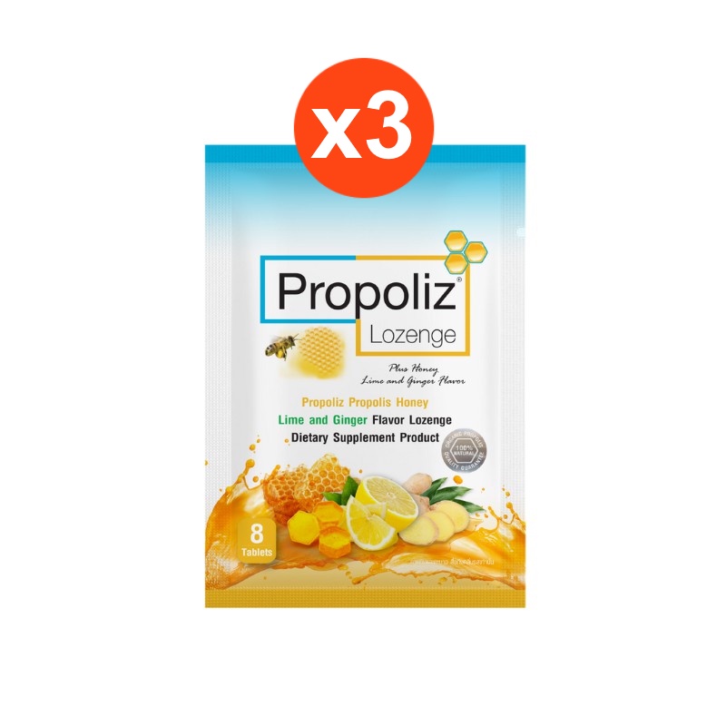 [3 ซอง] PROPOLIZ LOZENGE PLUS 8's โพรโพลิซ ชนิดเม็ดอม 8 เม็ด 20 กรัม