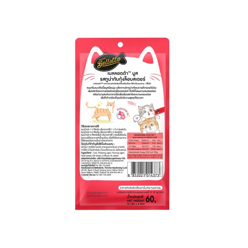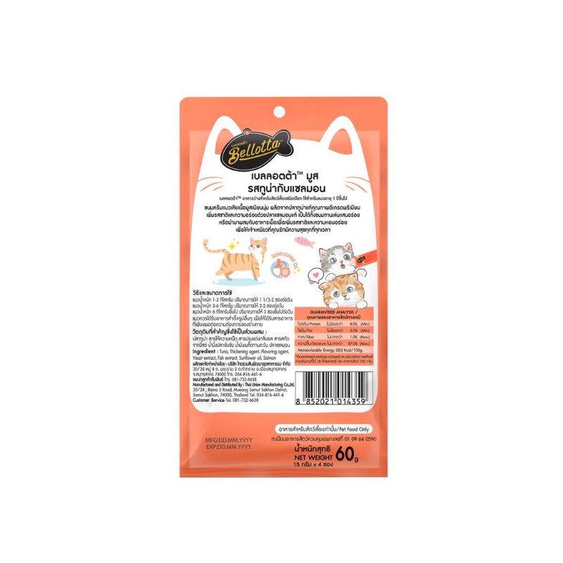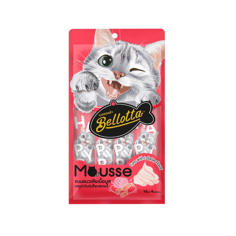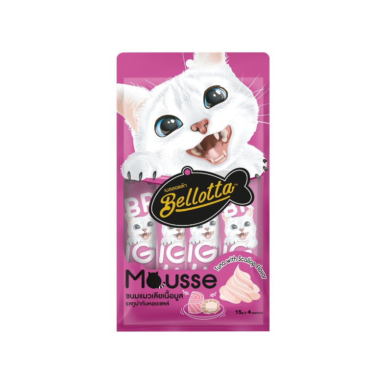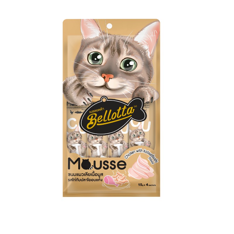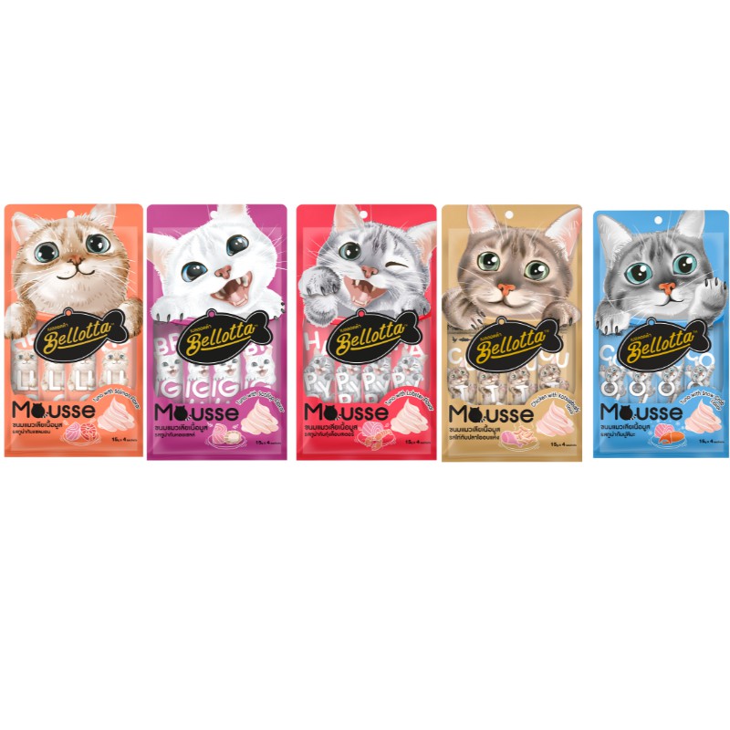 Bellotta เบลลอตต้า มูส ขนมครีมแมวเลีย ขนาด 15 กรัม x 4 ซอง (เลือกรสได้)