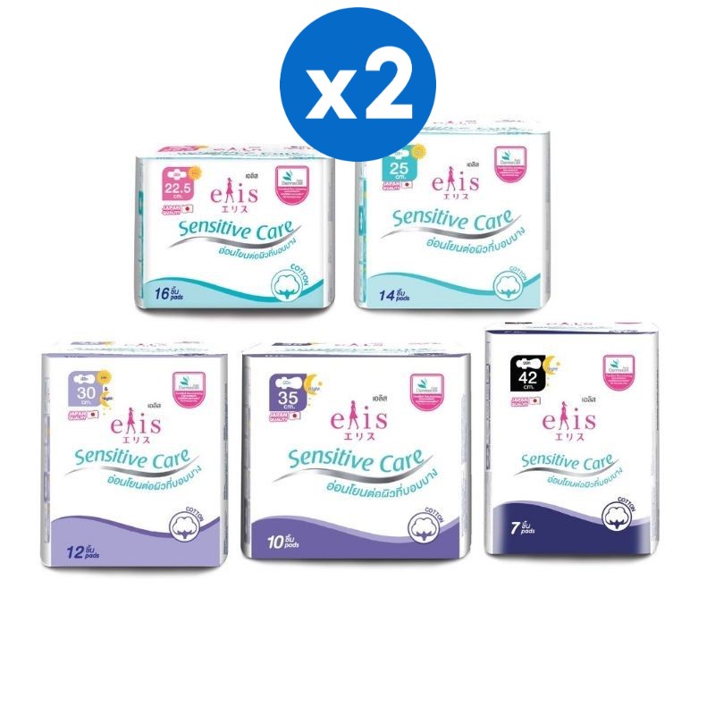 [2แพ็ค] ELIS Sensitive Care Sanitary Napkin เอลิส เซนซิทีฟแคร์ ผ้าอนามัย (เลือกขนาดได้)