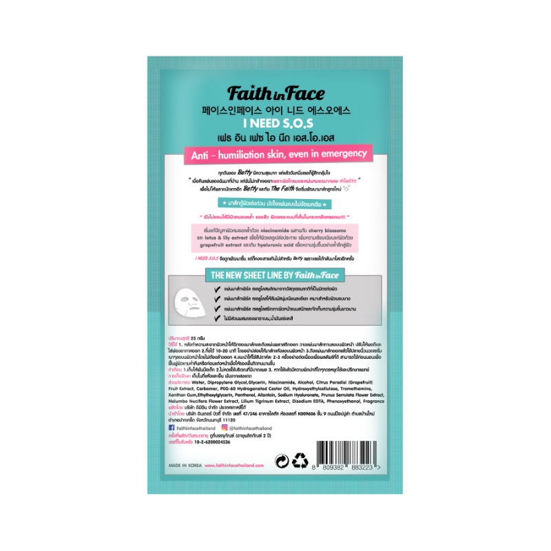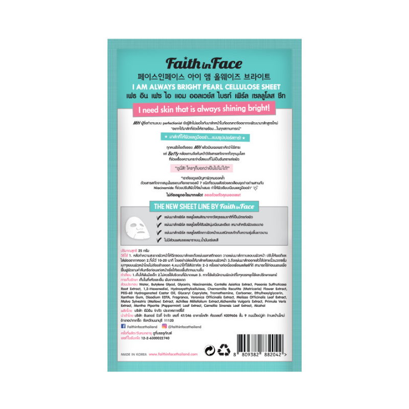 Faith in Face เฟธ อิน เฟซ เซลลูโลส แผ่นมาสก์หน้า 25 g. (เลือกสูตรได้)