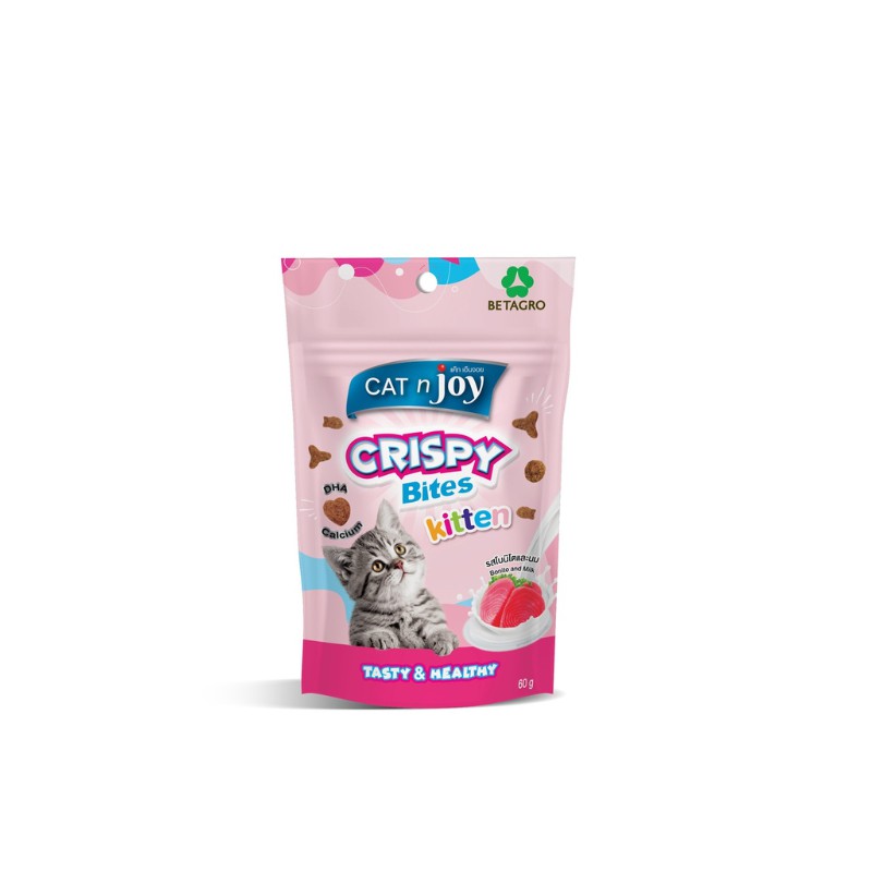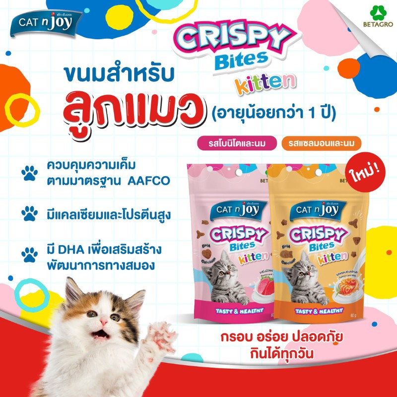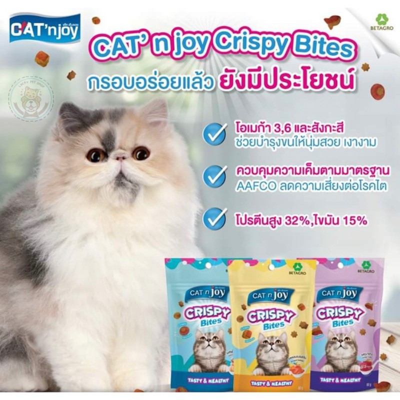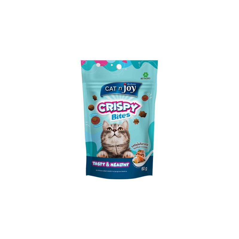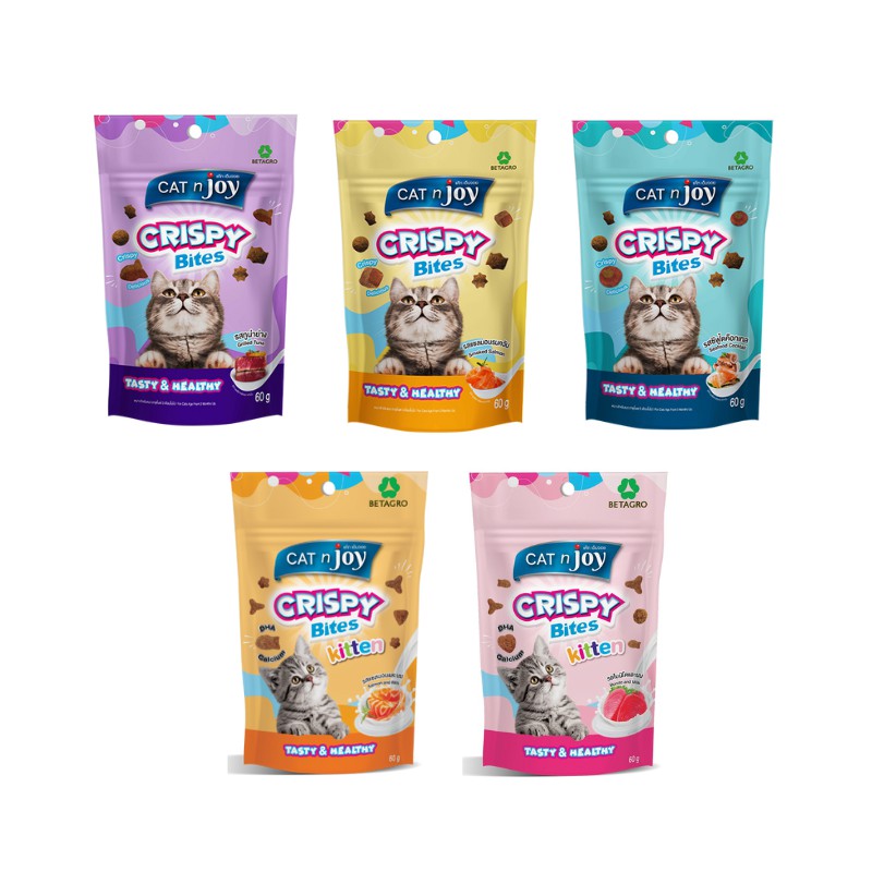 Cat n joy Crispy Bites แค็ทเอ็นจอย คริสปี้ไบทส์ ขนมแมว ขนาด 60 g. (เลือกรสได้)