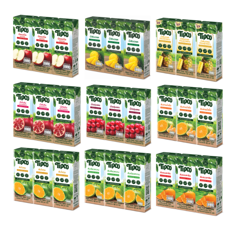 Tipco ทิปโก้ น้ำผักและผลไม้ 100% ขนาด 200 ml. แพ็ค3 (เลือกรสชาติ)