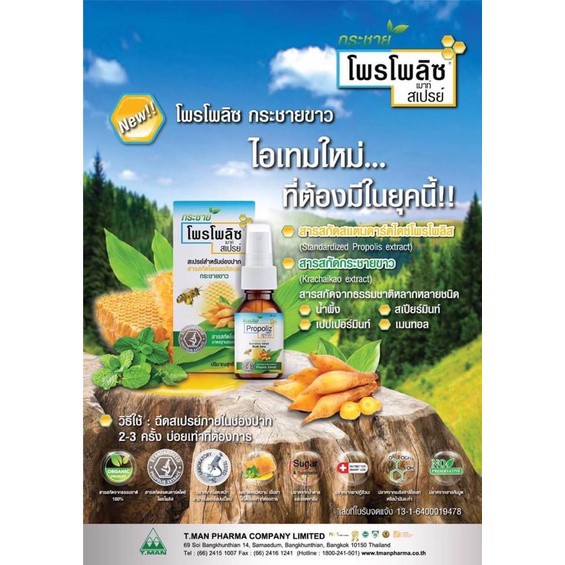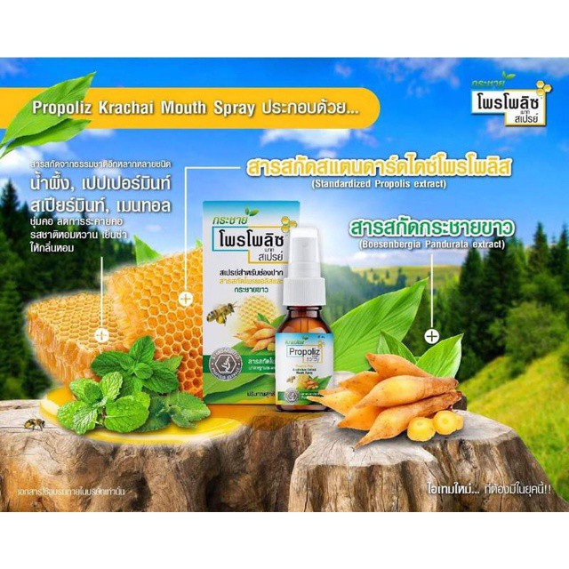 [ขายดี] Propoliz Mouth Spray สูตรกระชายขาว สเปรย์สำหรับช่องปากและลำคอ พ่นแก้ เจ็บคอ 15ml