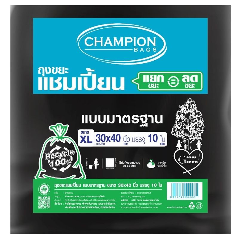 Champion bags ถุงขยะแชมเปี้ยน แบบมาตรฐาน 30" x 40" 10ใบ x4