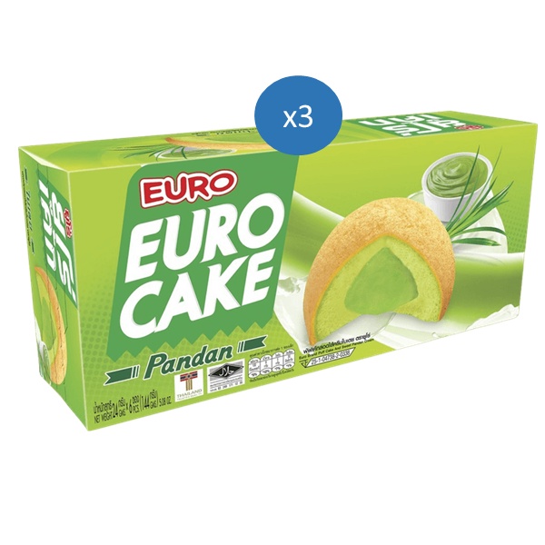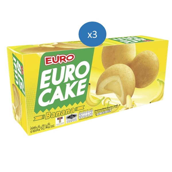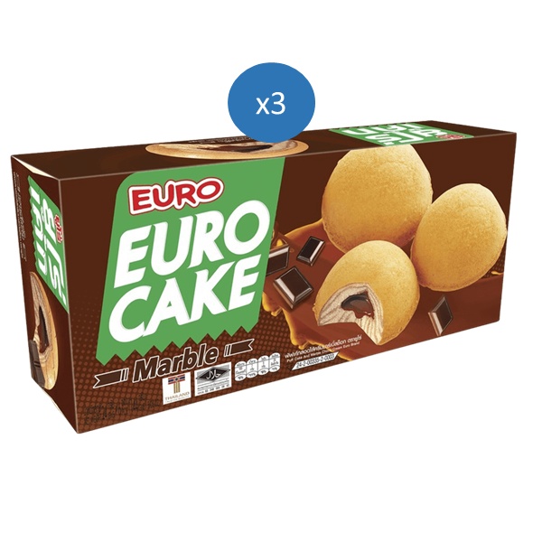 [ขายดี] Euro ฟัฟเค้กสอดไส้ ตรายูโร่ 144g (Pack x3) เลือกรสได้