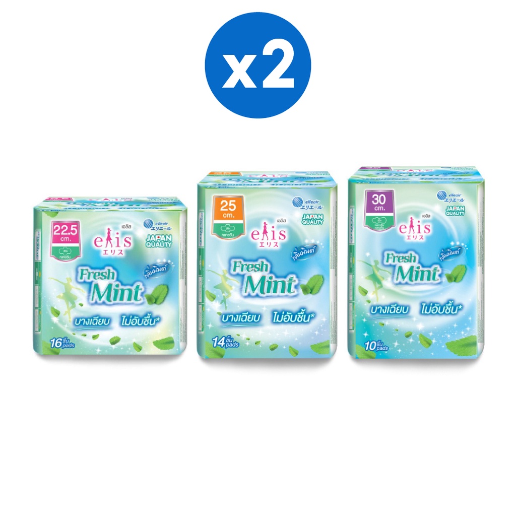 [2แพ็ค] ELIS Fresh Mint Sanitary Napkin เอลิส เฟรชมินต์ ผ้าอนามัย (เลือกขนาด)