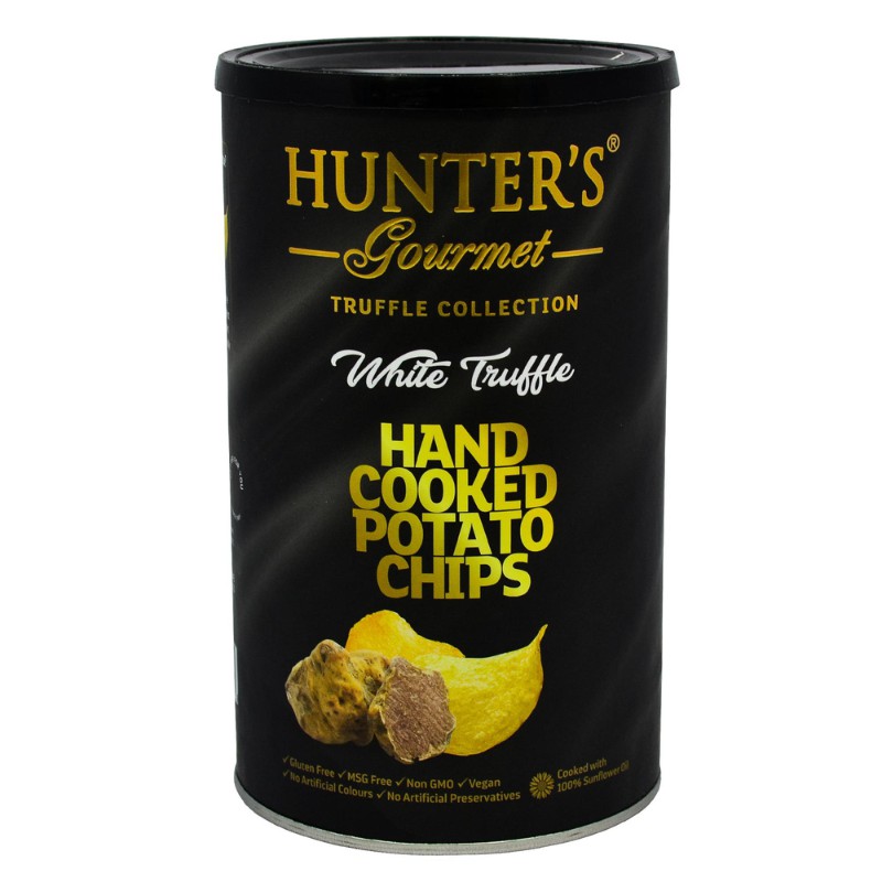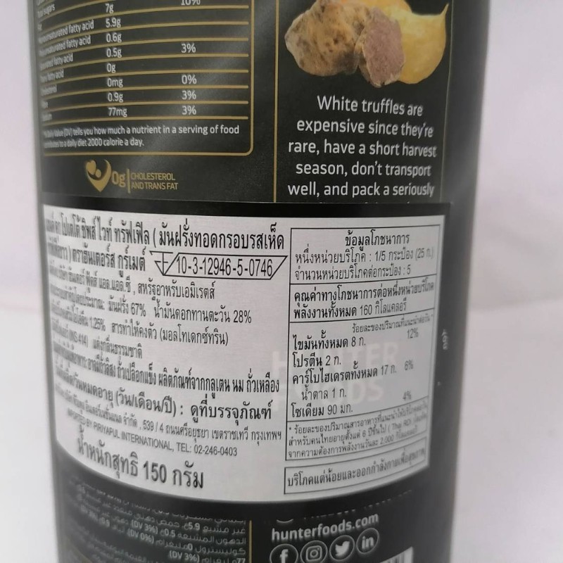 Hunter's ฮันเตอร์ส กูร์เมต์ แฮนด์ คุก โปเตโต้ ชิพส์ ไวท์ ทรัฟเฟิล 150 ก รัม (มันฝรั่งทอดกรอบรสเห็ดทรัฟเฟิลขาว)