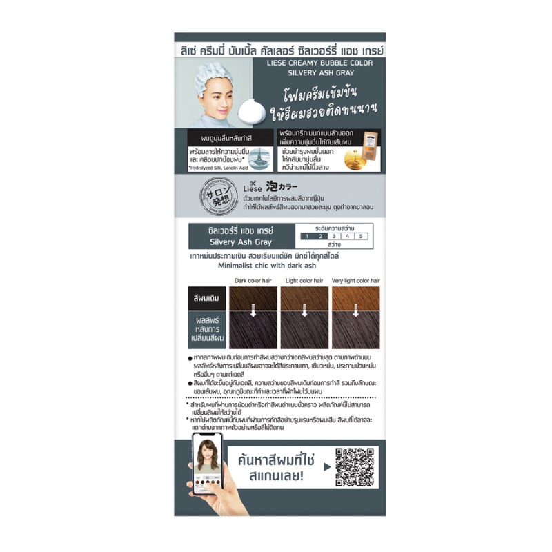 ลิเซ่ บับเบื้ล โฟมเปลี่ยนสีผม ซิลเวอร์รี่ แอช เกรย์ Liese Bubble Color Silvery Ash Grey สีเทาหม่นประกายเงิน
