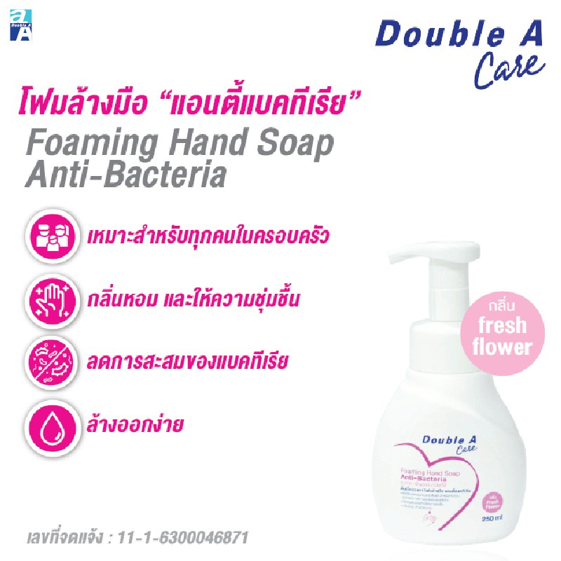 Double A โฟมสบู่ล้างมือ แอนตี้แบคทีเรีย ขนาด 250 มิลลิลิตร