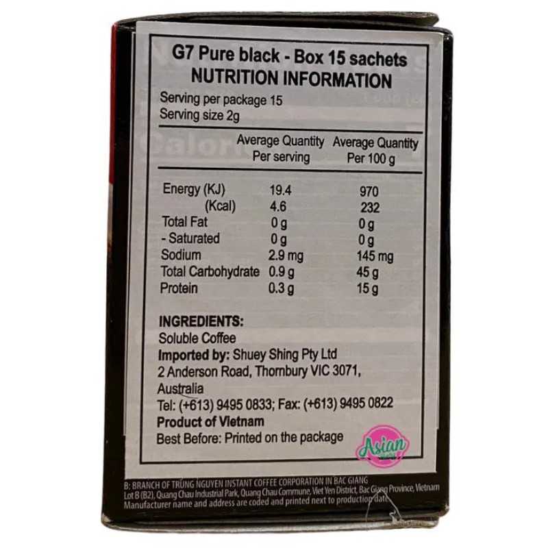 G7 Black instant coffee จีเซเว่น อินสแตนท์ คอฟฟี่ (กาแฟสำเร็จรูป) 30 กรัม (2กรัม X 15 ซอง)