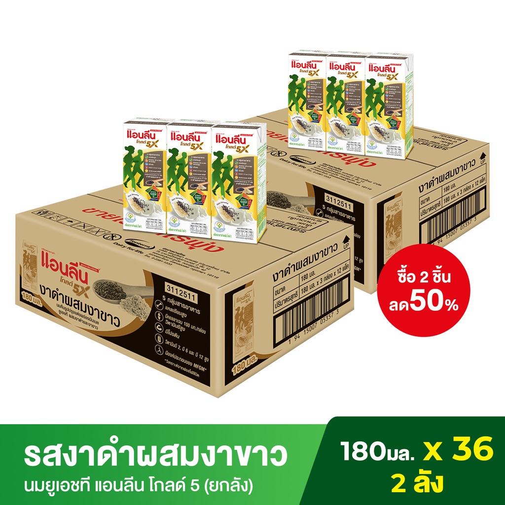 Anlene Gold 5 นมกล่องยูเอชทีแคลเซียมสูง รสงาดำผสมงาขาว180 มล (36กล่อง/ยกลัง) ซื้อ 1แถม1