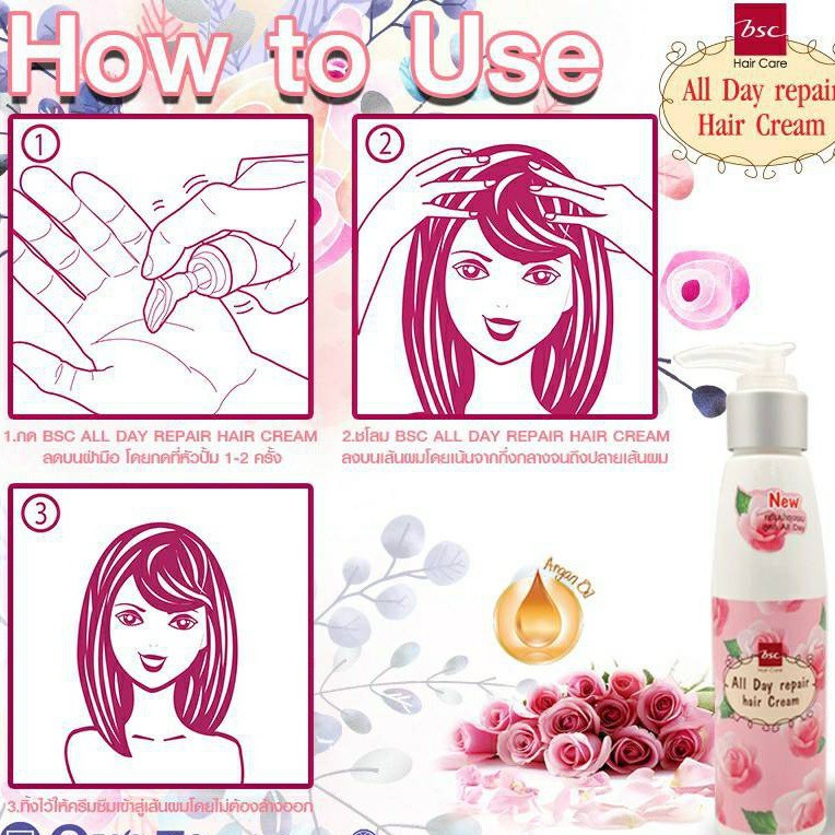 BSC ALL DAY REPAIR HAIR CREAM 120ml ครีมบำรุงสำหรับผมเเห้งเสีย