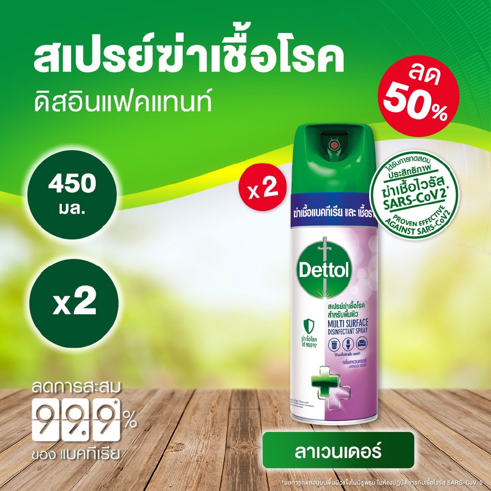 [ลด 50%] เดทตอล ดิสอินเฟคแทนท์ สเปรย์ฆ่าเชื้อโรค กลิ่น ลาเวนเดอร์ 450 มล.x2 Dettol Disinfectant Spray Lavender 450mlx2