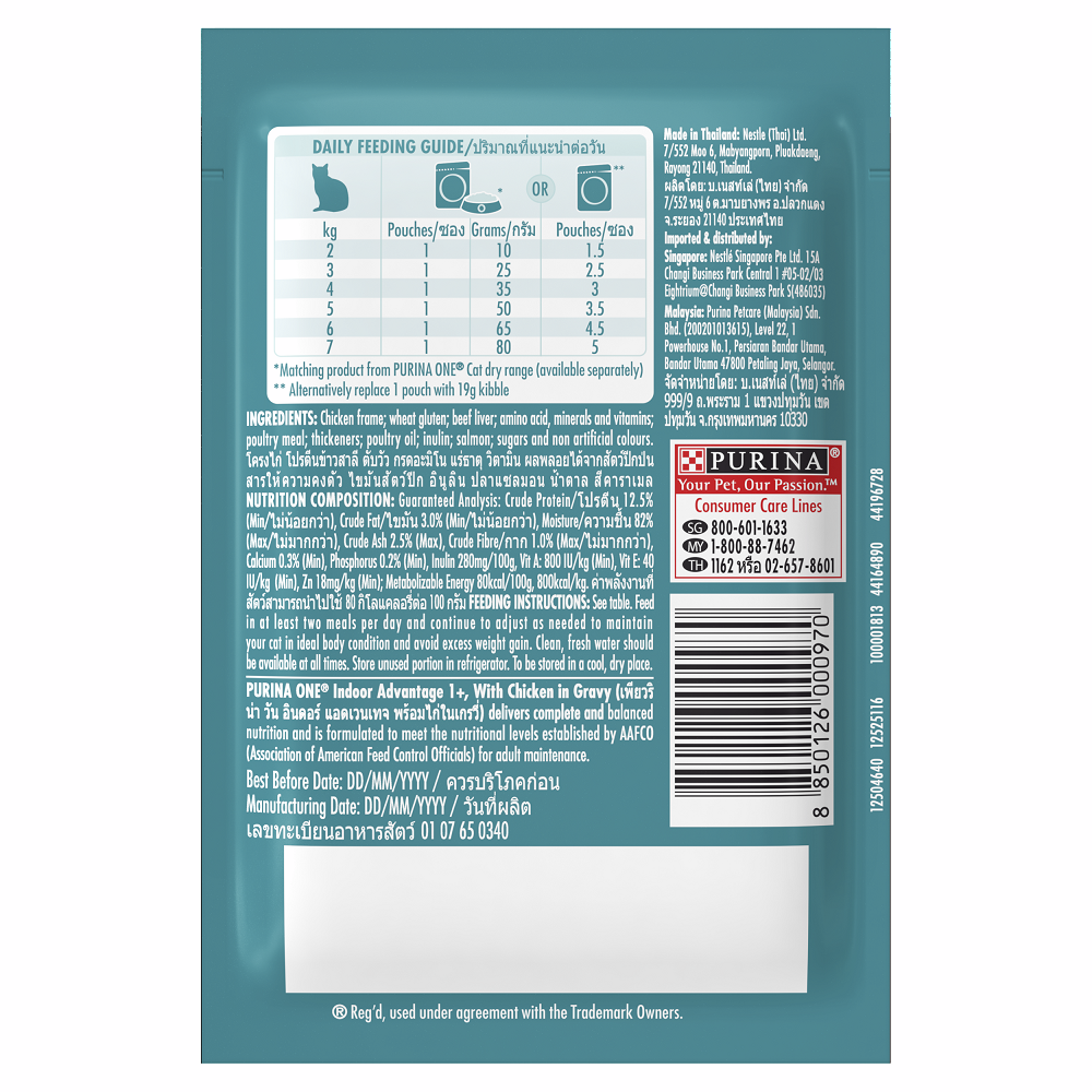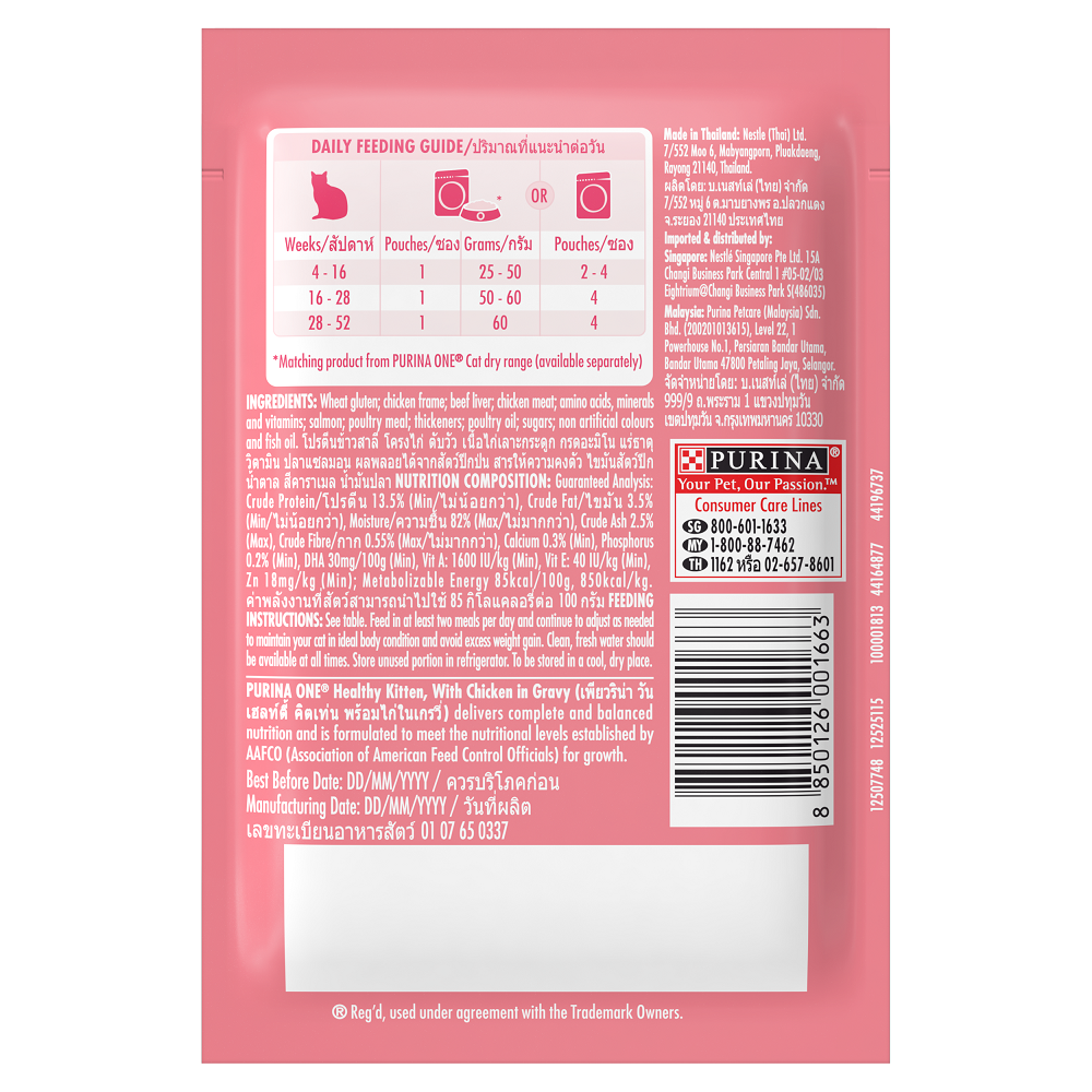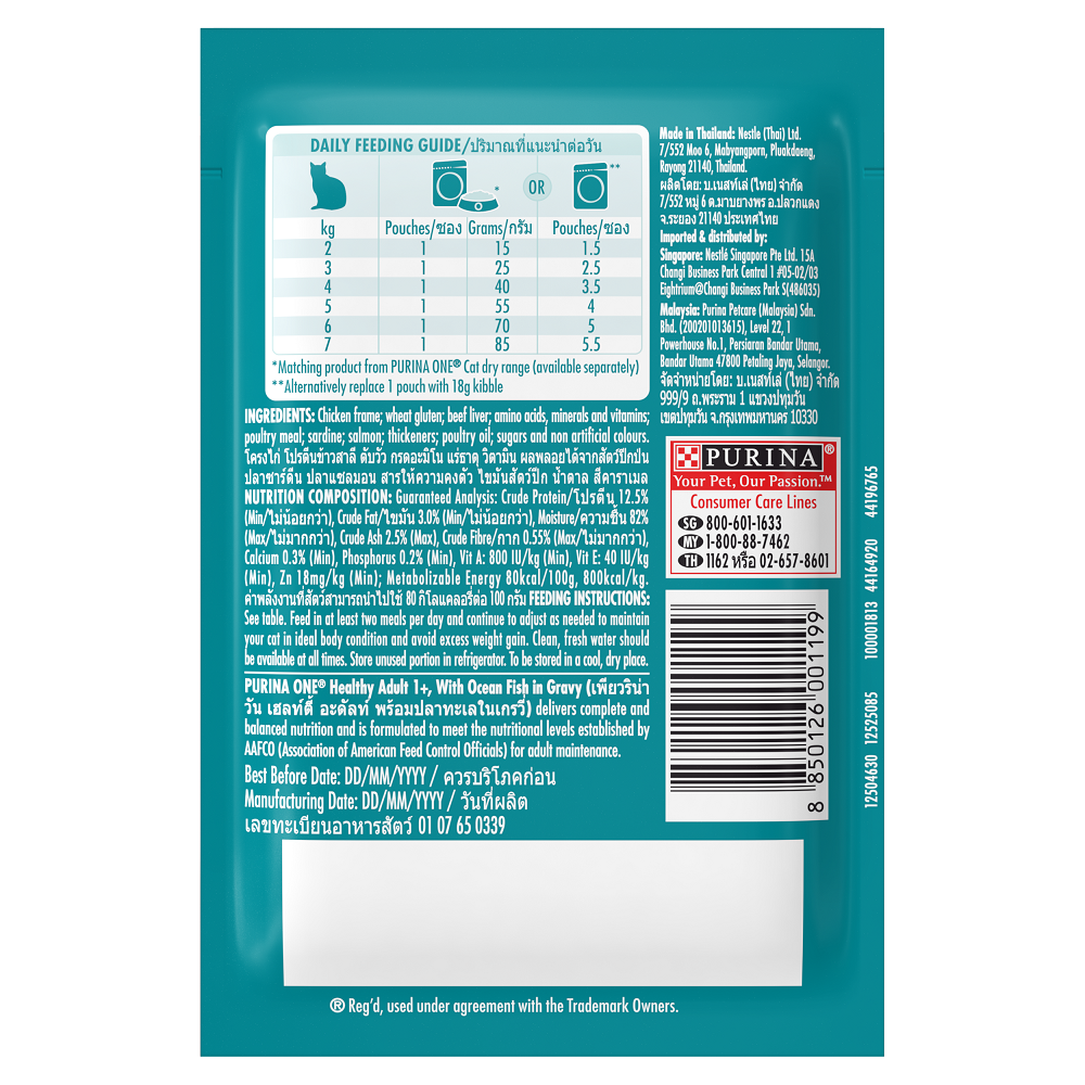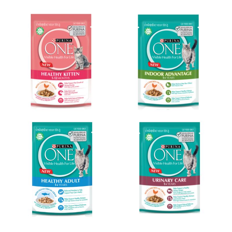 PURINA ONE เพียวริน่า วัน อาหารเปียกในน้ำเกรวี่ สำหรับแมว ขนาด 85 กรัม (เลือกสูตรได้)