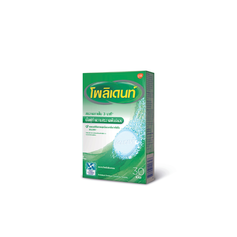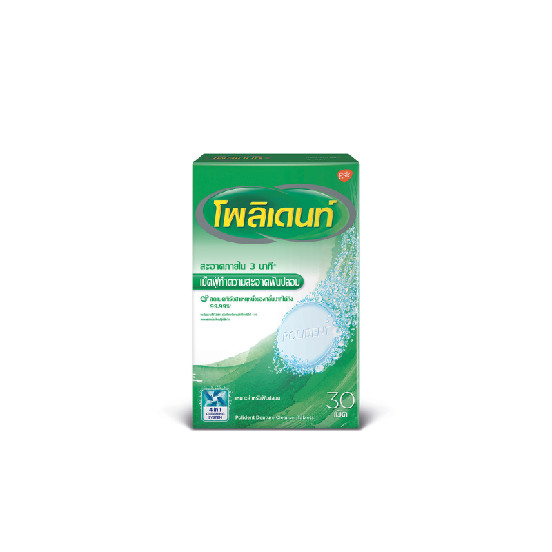 POLIDENT โพลิเดนท์ เม็ดฟู่ ทำความสะอาดฟันปลอม 30 เม็ด