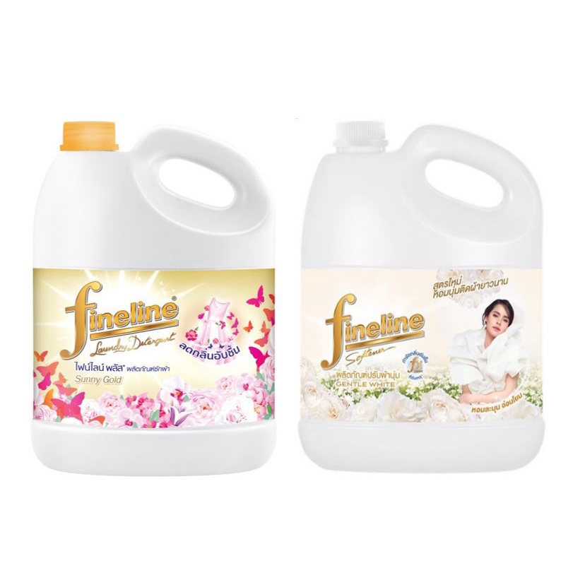 [เซ็ทผ้าหอม] Fineline ซักผ้า สูตรลดกลิ่นอับชื้น สีทอง กลิ่นซันนี่โกลด์ 3000 มล. + ปรับผ้านุ่ม กลิ่นเจนเทิล ไวท์ 2800 มล.