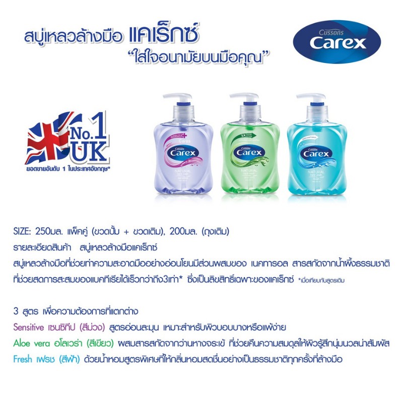 Carex Hand Wash 250ml Bogo pack น้ำยาล้างมือแคเร็กซ์ สบู่เหลวล้างมือ 250มล.แพ็คคู่ (เลือกสูตร)