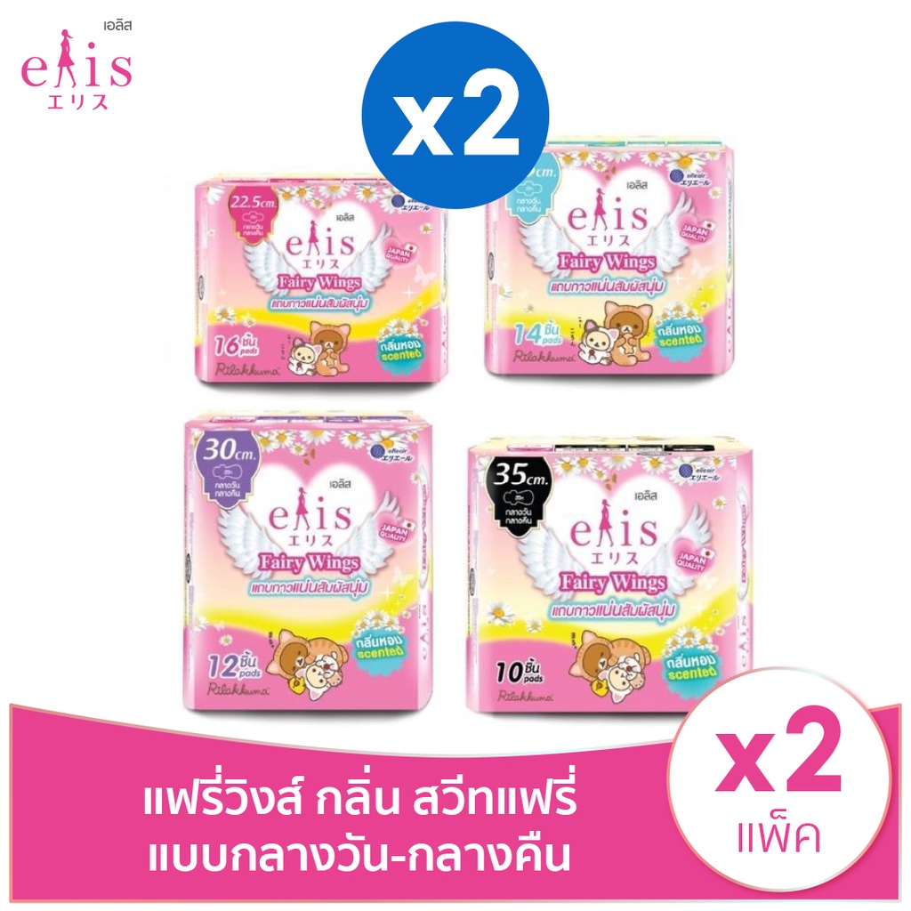 [2แพ็ค] ELIS Fairy Wings Sweet Fairy Scent Sanitary Napkin เอลิส แฟรี่วิงส์ กลิ่น สวีทแฟรี่ ผ้าอนา มัย (เลือกขนาดได้)