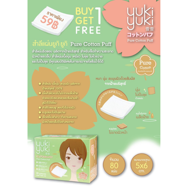 (1 แถม 1) Yuki Yuki ยูกิยูกิ สำลีแผ่นรีดขอบ รุ่นเพียวคอตตอนพัฟ 80แผ่น/กล่อ ง