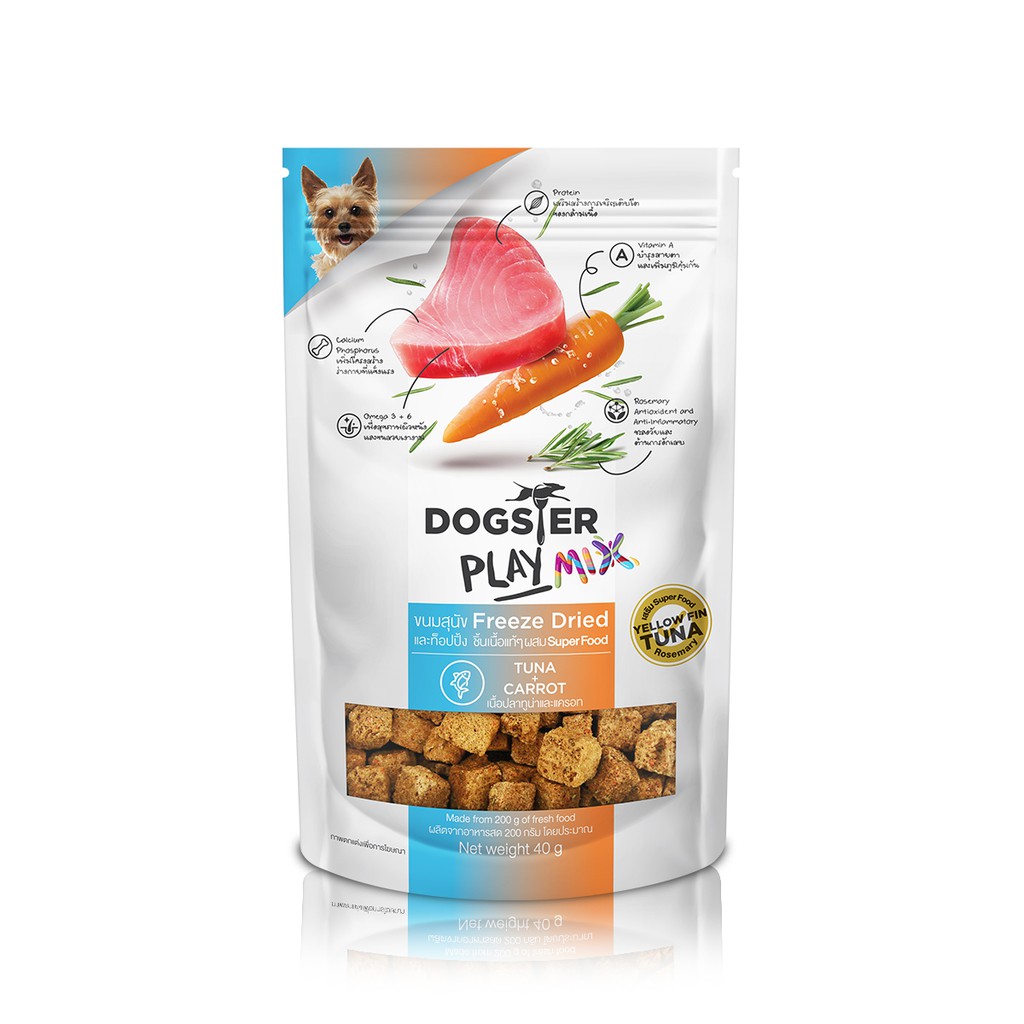Dogster Play Mix ด็อกส์เตอร์เพลย์มิกซ์ ขนมและทอปปิ้งฟรีซดาย ขนาด 40กรัม (เลือกรสได้)