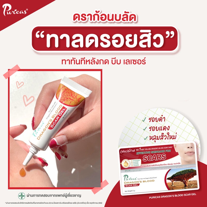 [x3] Puricas Dragon’s Blood Scar Gel เจลรักษาแผลเป็น ขนาด 8 กรัม