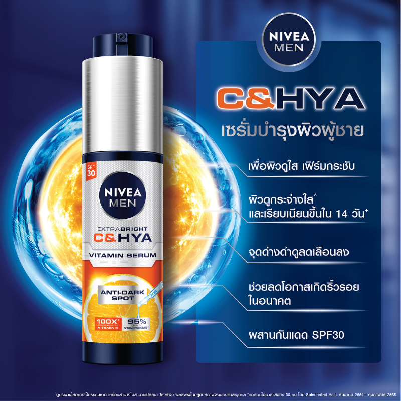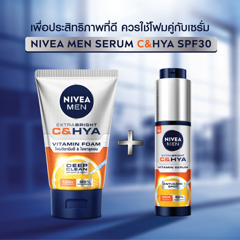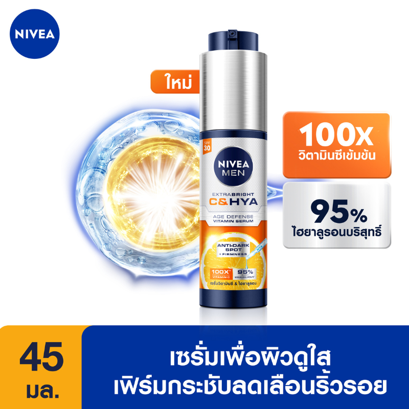 NIVEA นีเวีย เมน เอ็กซ์ตร้า ไบรท์ ซี แอนด์ ไฮยา เอจ ดีเฟนซ์ วิตามิน เซรั่ม เอสพ ีเอฟ30 45 มล.