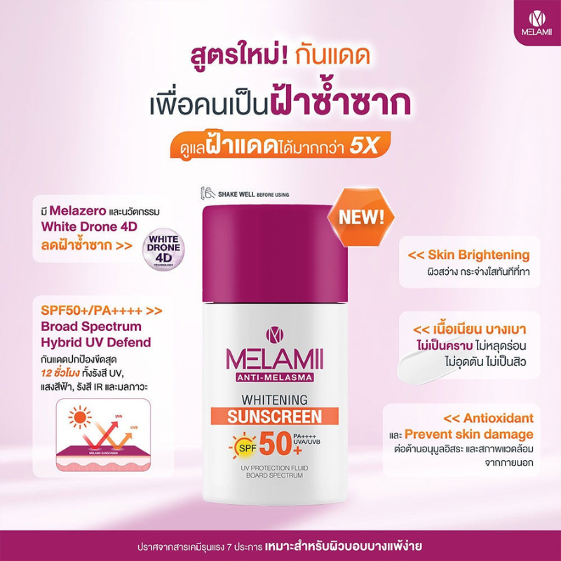 Melamii Anti Melasma Sunscreen SPF50+ PA+++ 30ml กันแดดเมลามิ แอนตี้ เมลาสม่า