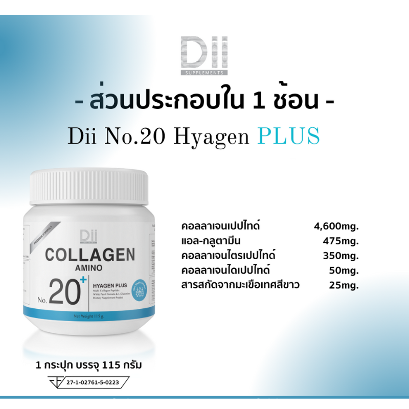 Dii สูตร No.20 Hyagen PLUS อะมิโนคอลลาเจนพลัส (115 กรัม)