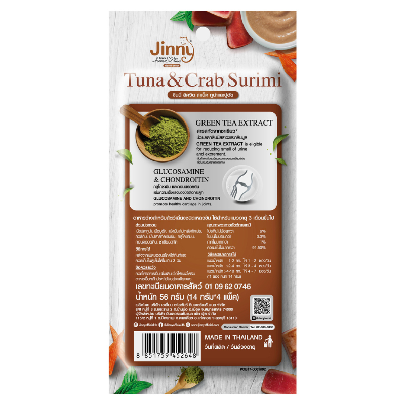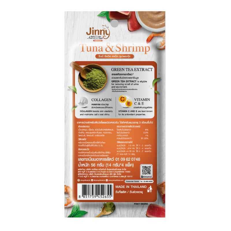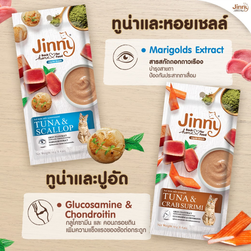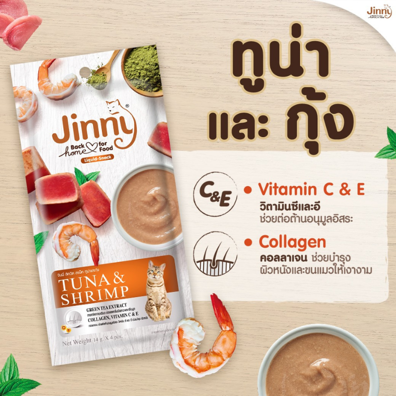 Jinny จินนี่ ลิควิค สแน็ค ขนมแมวเลีย ขนาด 14 กรัม แพ็ค 4 ชิ้น (เลือกรสได้)
