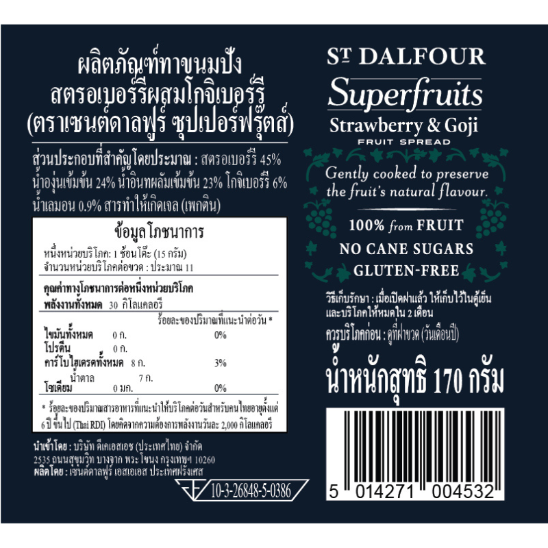 ST.Dalfour Superfruits เซนต์ดาลฟูร์ ซุปเปอร์ฟรุ๊ตส์ แยมผลไม้ ขนาด 170 กรัม (เลือกรสได้)