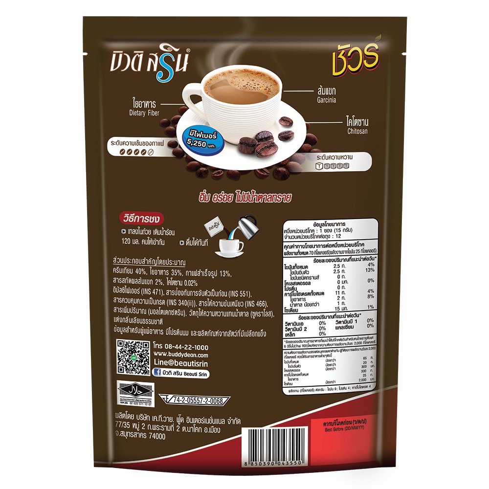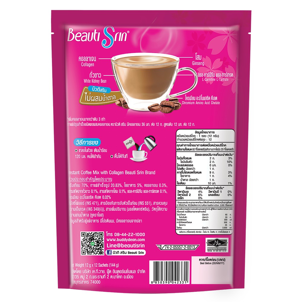 Beauti Srin กาแฟบิวติสริน (12 ซอง) เลือกรสได้