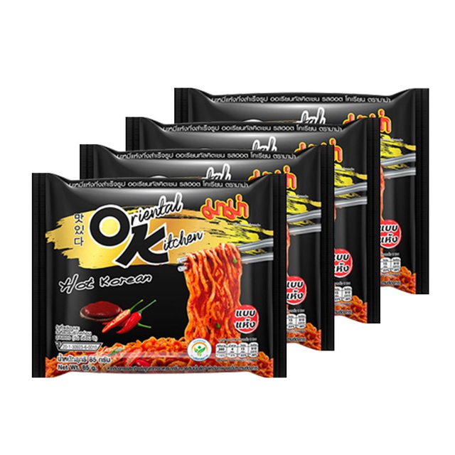 [ขายดี] มาม่าออเรียนทัลคิตเชน บะหมี่แห้งกึ่งสำเร็จรูป รสฮอตโคเรียน 85กรัมX(แพ็ค 4)