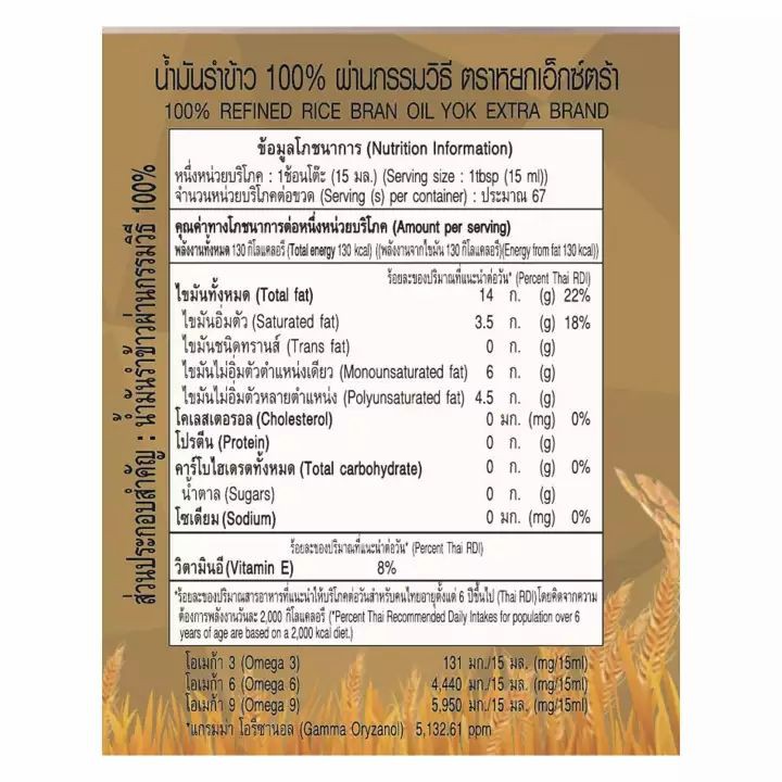 หยกเอ็กซ์ตร้า น้ำมันรำข้าว100% 8000ppm 1 ลิตร