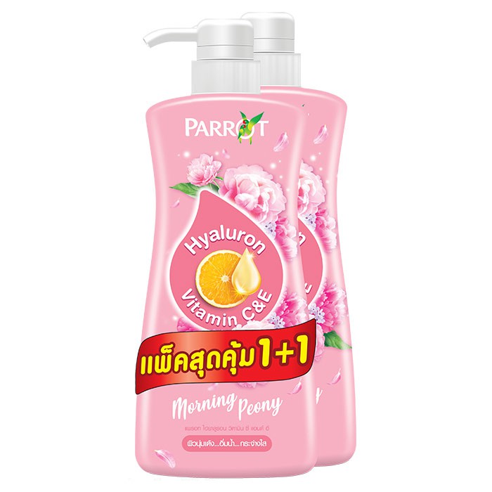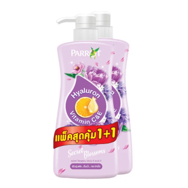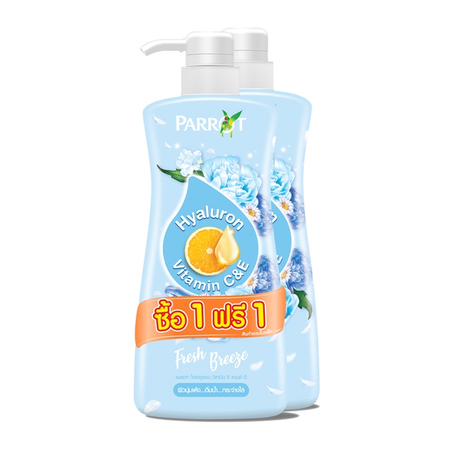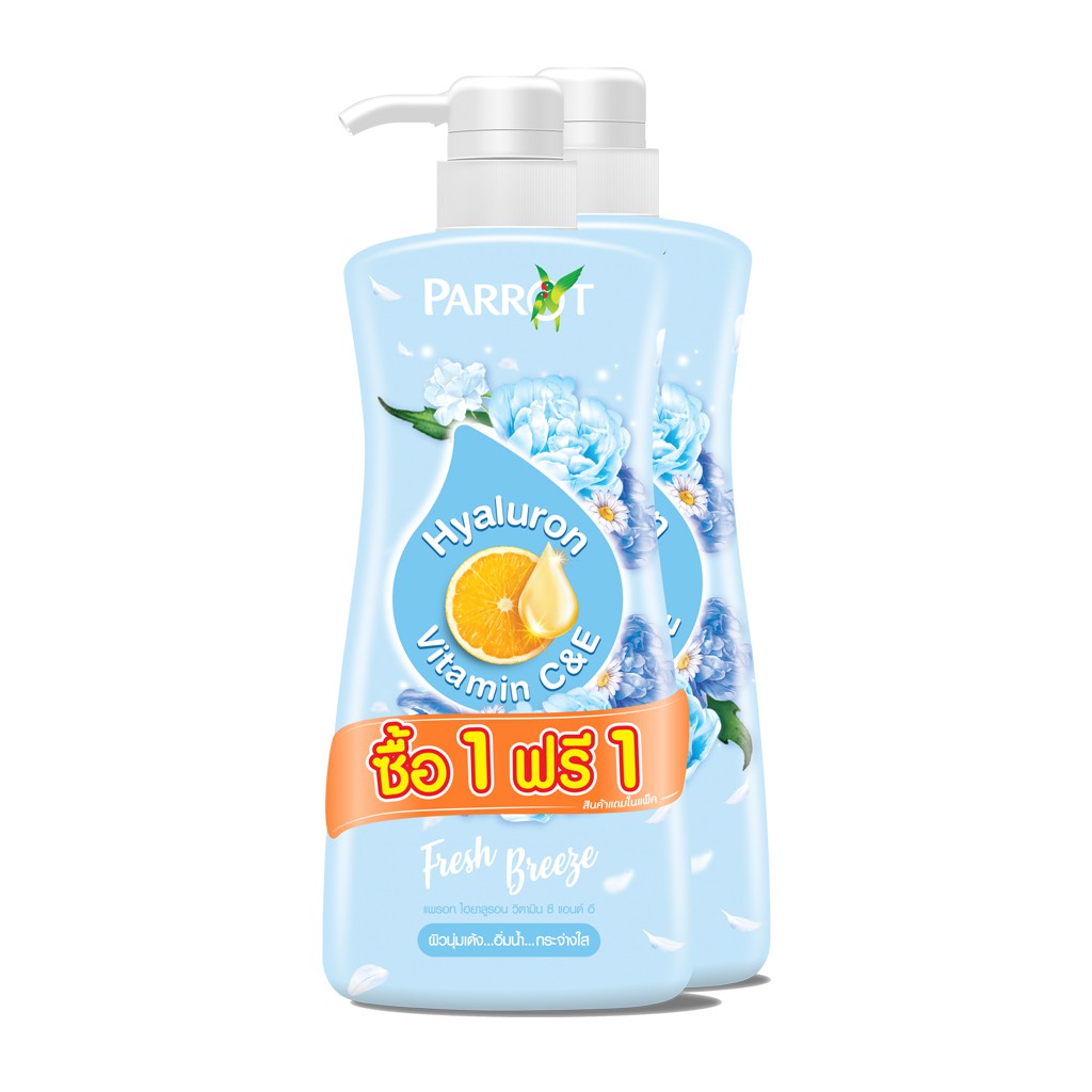 (1แถม1) Parrot ครีมอาบน้ำ แพรอท ไฮยาลูรอน วิตามิน ซี แอนด์ อี ขนาด 450 มล. (เลือกกลิ่นได้)