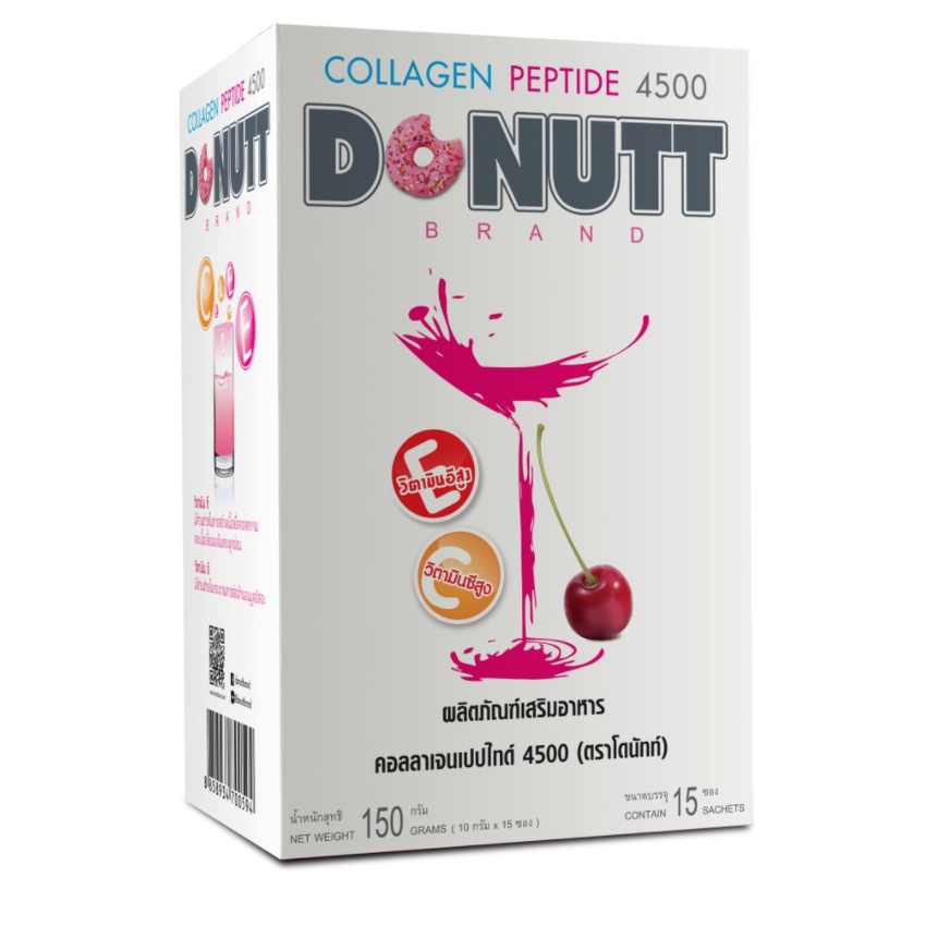 Donutt โดนัทท์คอลลาเจนเปปไทด์4,500mg.กลิ่นสตรอว์เบอร์รี่ ขนาด 15 ซอง ขนาด150 กรัม