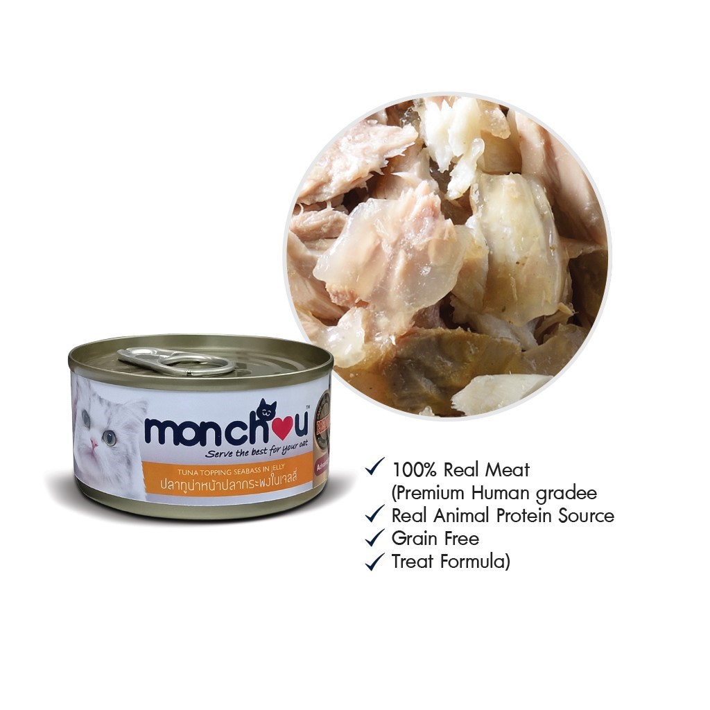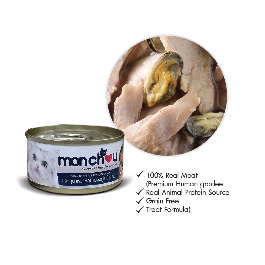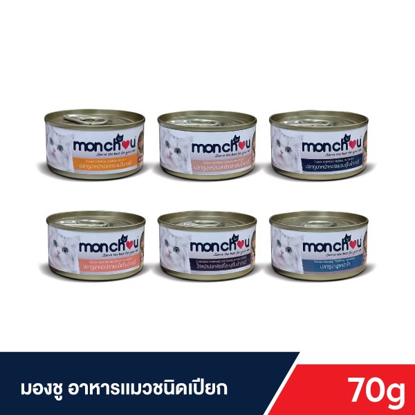 Monchou มองชู อาหารแมว ชนิดเปียก แบบกระป๋อง 70g (เลือกสูตรได้)