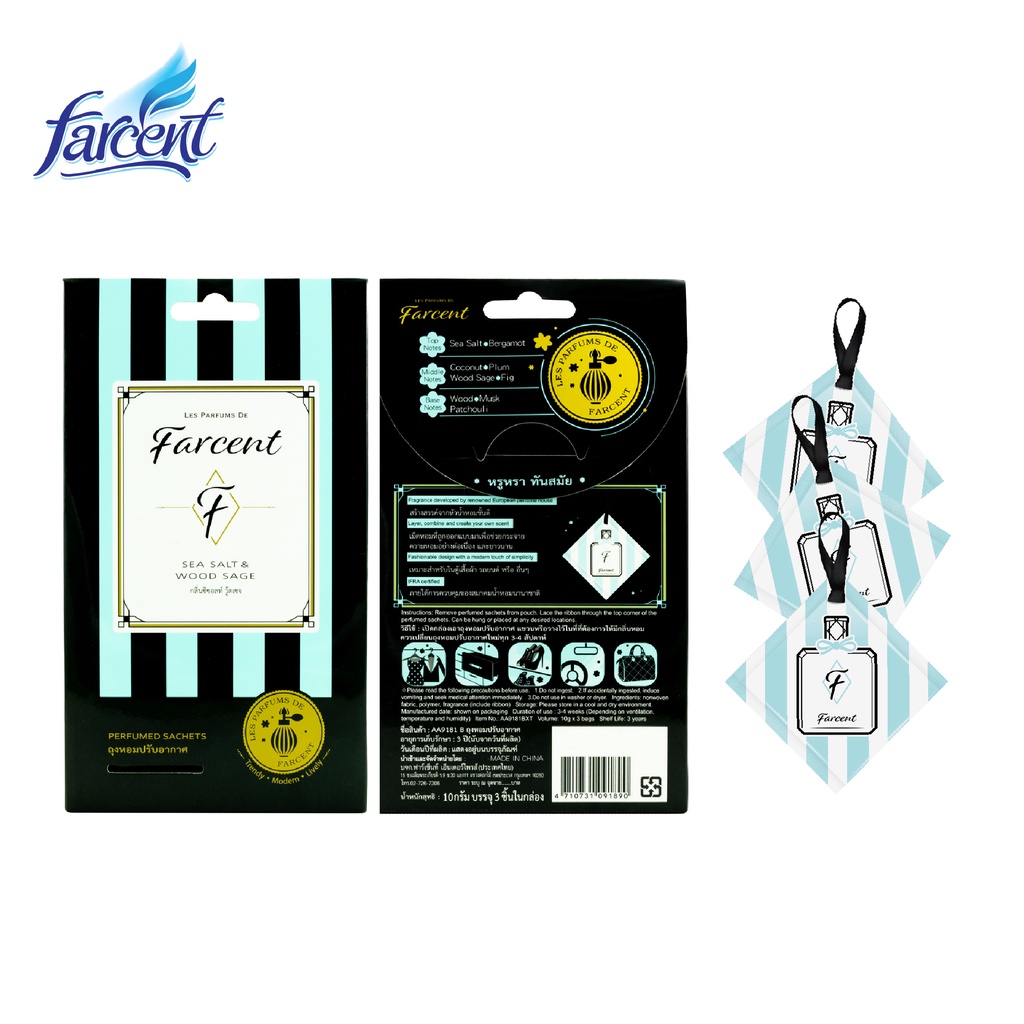 Farcent ถุงหอมแขวนปรับอากาศ LPF 10ก. บรรจุ 3 ชิ้น (เลือกกลิ่นได้)