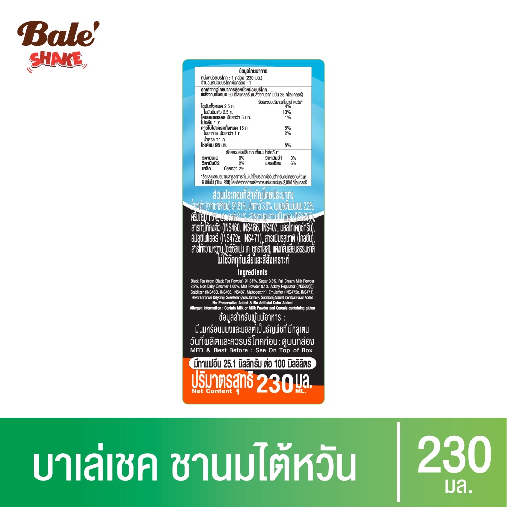 [ขายดี] Bale shake ชานมบาร์เลย์เชค 230 มล. แพ็ค 6-Bale shake ชานมบาร์เลย์เชค 230 มล. แพ ็ค 6